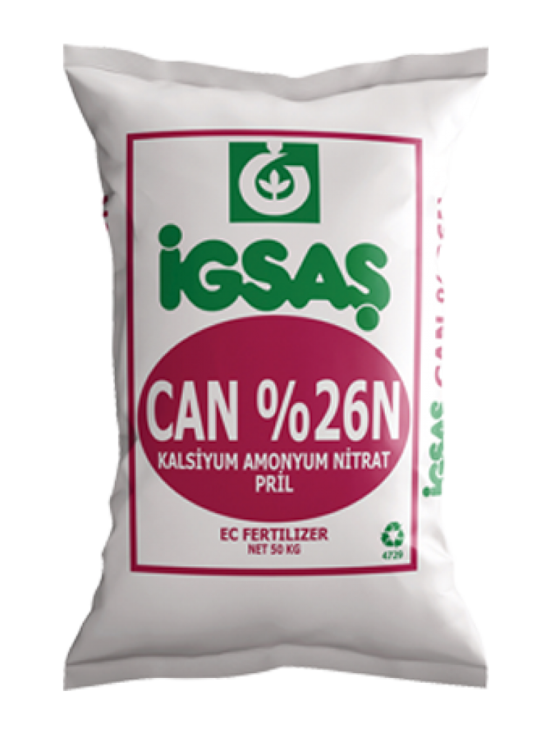 gübresi amonyum (NH4+) ve nitrat (NO3-) formlarında toplam %26 oranında azot içermektedir. Çeltik hariç tüm bitkilerin gübrelenmesinde, bilhassa asidik pH’lı kireçsiz topraklarda kullanılan bir üst gübresidir. CAN gübresi, bir taraftan bitkiye ihtiyaç duyduğu nitratı hazır olarak temin ederken, diğer taraftan amonyum iyonlarının toprak kolloidleri tarafından tutulması ile bitkinin bütün büyüme mevsimi boyunca ihtiyaç duyacağı azotu karşılar.
